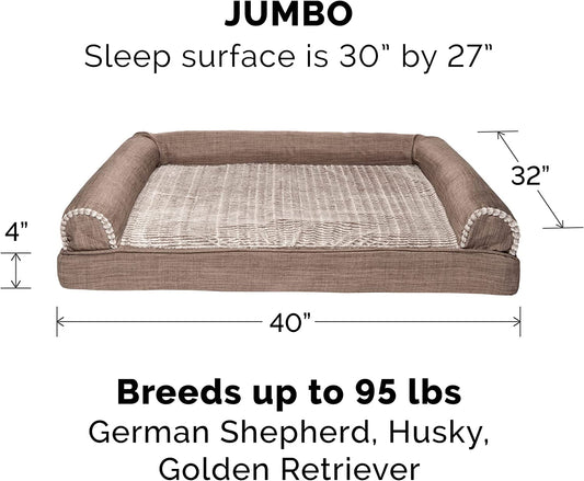 Orthopedic Dog Bed for Large Dogs W/ Removable Bolsters & Washable Cover, for Dogs up to 95 Lbs - Luxe Faux Fur & Performance Linen Sofa - Woodsmoke, Jumbo/Xl